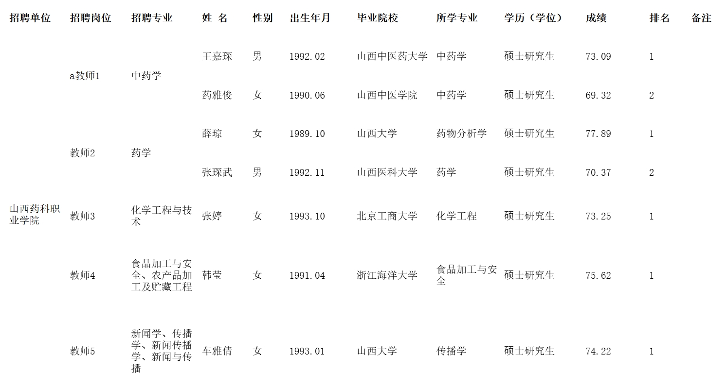 附件:《山西省药品监督管理局所属事业单位2018年度公开招聘拟聘用人员名单》