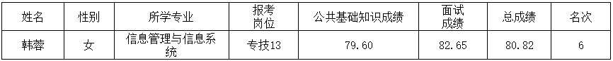 因报考专技13岗位的刘宪梓(综合成绩第四名)自愿放弃考察体检资格,根据《365上市公司官网入口2019年公开招聘工作人员公告》的有关要求,现依据综合成绩由高分到低分递补考察体检人员。现将递补人员信息公告如下: