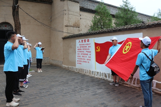 7月11日,赴襄垣暑期社会实践团师生12人在团县委工作人员的带领下,来到了中共襄垣一大旧址。参观中,队员们对中国共产党带领广大群众艰苦卓绝的抗战有了更加立体的感受,特别是听了在这里生活了几十年的老奶奶热情讲述抗日英雄赵永堂、梁品青等人的英雄事迹,队员们更加增加了对共产党人的敬仰。随后,队员们面对党旗、团旗,重温入团誓词,集体诵读团的新章程。