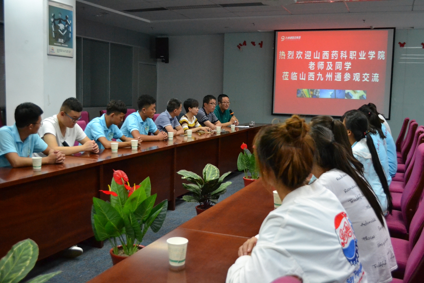 7月10日,赴太原九州通实践团队顺利抵达山西九州通医药有限公司开始为期7天的暑期社会实践活动。九州通医药有限公司的领导热情接待了实践队员,在办公楼5层会议室召开了欢迎仪式。仪式上,大家首先一同观看了《逐梦九州》企业宣传片,了解了企业的基本情况、发展优势、企业文化等。接着,九州通药业副总张晶代表企业对实践队员们的到来表示欢迎。张总讲到,作为校友看到朝气蓬勃、意气风发的药院学子内心十分亲切,希望大家珍惜此次实践机会,勤于观察、勤于思考、勤于总结,通过此次实践锻炼,了解企业的用人需求,进而补齐短板,全面提升自己的综合素质。