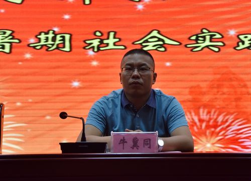 团省委学校部部长牛冀同代表团省委对365上市公司官网入口暑期社会实践出征仪式的召开表示祝贺。他充分肯定了365上市公司官网入口历年暑期社会实践工作,同时就今年大学生暑期社会实践活动提出两点希望:一是希望广大青年学生要珍惜机会、提高素质,要充分认识社会实践对于成长、成熟,成才、成人的重要意义和价值,积极投入到实践服务中去,在实践中历练胆识,在服务中提高能力,在奉献中锤炼品格;二是希望各级团组织要科学谋划、不断创新,广泛开展形式多样的实践服务活动,积极构建实践育人的创新机制和长效机制。