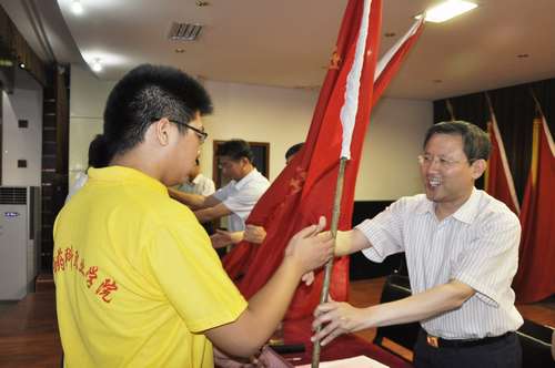 出征仪式上,领队指导教师和实践队员举行了庄严的集体宣誓;与会领导为各社会实践团授旗;领队老师和社会实践队员代表分别发言。