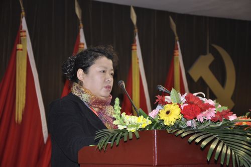 图为党委书记张瑞芳同志讲话