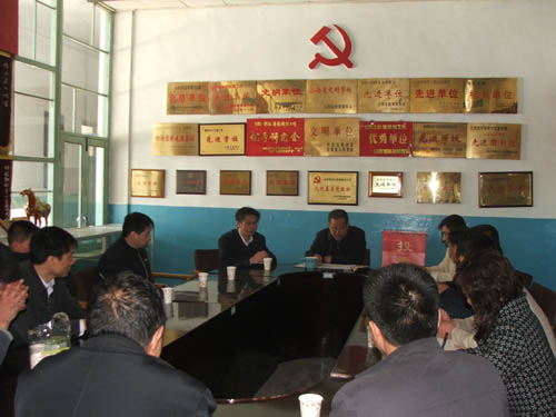 图为组织部长冯晓中参加晋阳制药厂党支部换届选举党员大会