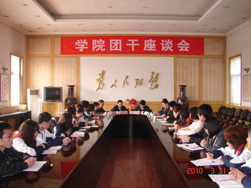 最后,团委书记彭志强作了表态发言,团干座谈会的召开,体现了新一届领导班子对学院团的工作的高度重视,体现了对青年学生成长成材的关怀和关爱,并下一步的工作指明了方向。各位团干要深刻领会,逐级传达,认真落实。各级团组织要在学院党委的正确领导下,围绕学院中心工作,不辱团的使命,开拓创新,努力拼搏,为实现学院又好又快发展做出新的贡献。