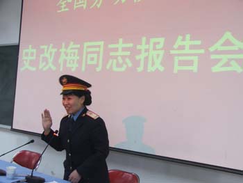报告会上,史改梅向全院教职工讲述了她20多年来在自己平凡的工作岗位上所做的件件感人事迹。二十多年来,史改梅帮助过许许多多孤寡无助的老人,支持过渴望上学的盲人,服持过出差生病的年轻人,还帮助过意外出事的士兵和无钱回家的外乡人。先后救助了 145 名被人遗弃的幼儿,并将他们送进了福利院。