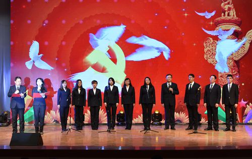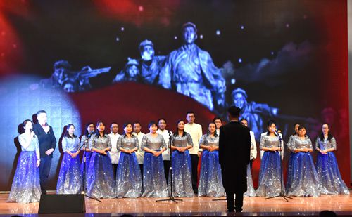 文艺演出在大合唱《共筑中国梦》的旋律中拉开帷幕,独唱《阳光路上》、手语操《厉害了,我的国》、合唱《走向复兴》、舞蹈《再唱山歌给党听》、男生小合唱《大中国》、配乐诗朗诵《筑梦辉煌》、健美操《中国范儿》、合唱《没有共产党就没有新中国》、舞蹈《春天的故事》……一个个精彩的节目,感情真挚、荡气回肠,每一首歌曲,每一段朗诵,都引起现场观众的强烈共鸣。最后,一曲优美的舞蹈《春天的故事》圆满落幕。