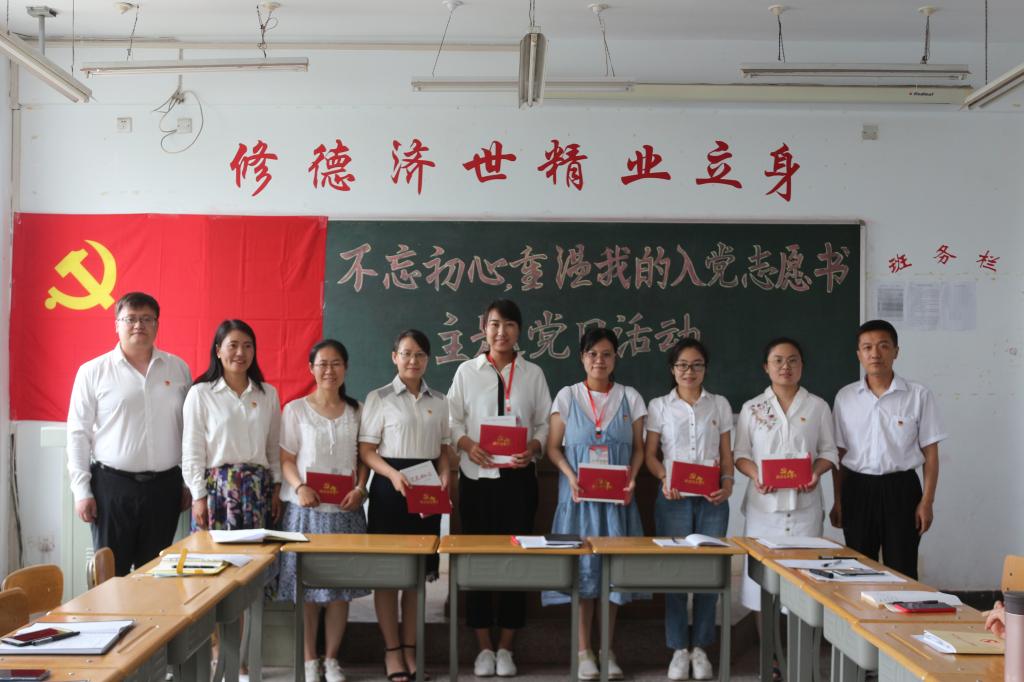器械工程系党总支教师、学生党支部于6月23日下午联合开展“不忘初心,重温我的入党志愿书”主题党日活动。活动以题为“如何做一名新时代合格的共产党员”的生动党课开始,接着,全体党员同志通过联系个人思想和工作实际重温入党志愿书,回顾入党初心,回忆入党故事,分享了入党多年的感想和体会。随后,全体党员为6月份入党的党员同志们过政治生日,并发放生日贺卡,赠送学习书籍。同志们纷纷表示感谢党组织的培养和锻炼,以后将在各自岗位上积极工作、模范带头,为教育工作做出应有的贡献。