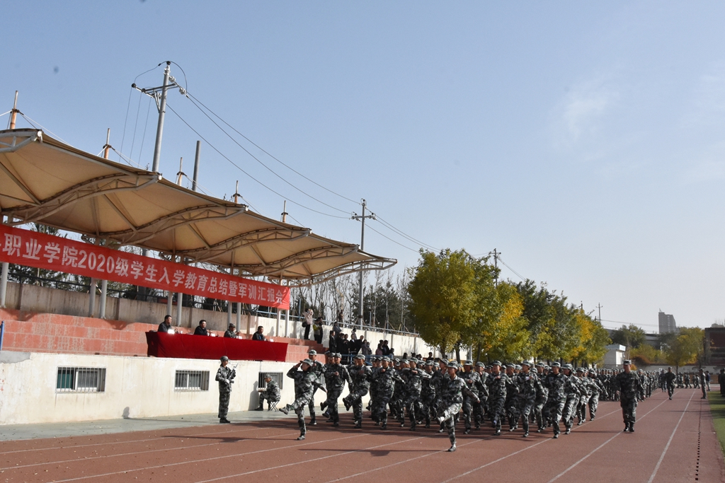 10月31日上午,学院在运动场举行2020级新生入学教育总结暨军训汇报会。学院领导、太原市警备区教官派遣队负责人、各部门单位主要负责人、全体教官、新生辅导员以及2020级全体学生参加大会。大会由院党委委员、副院长贾建斌主持。