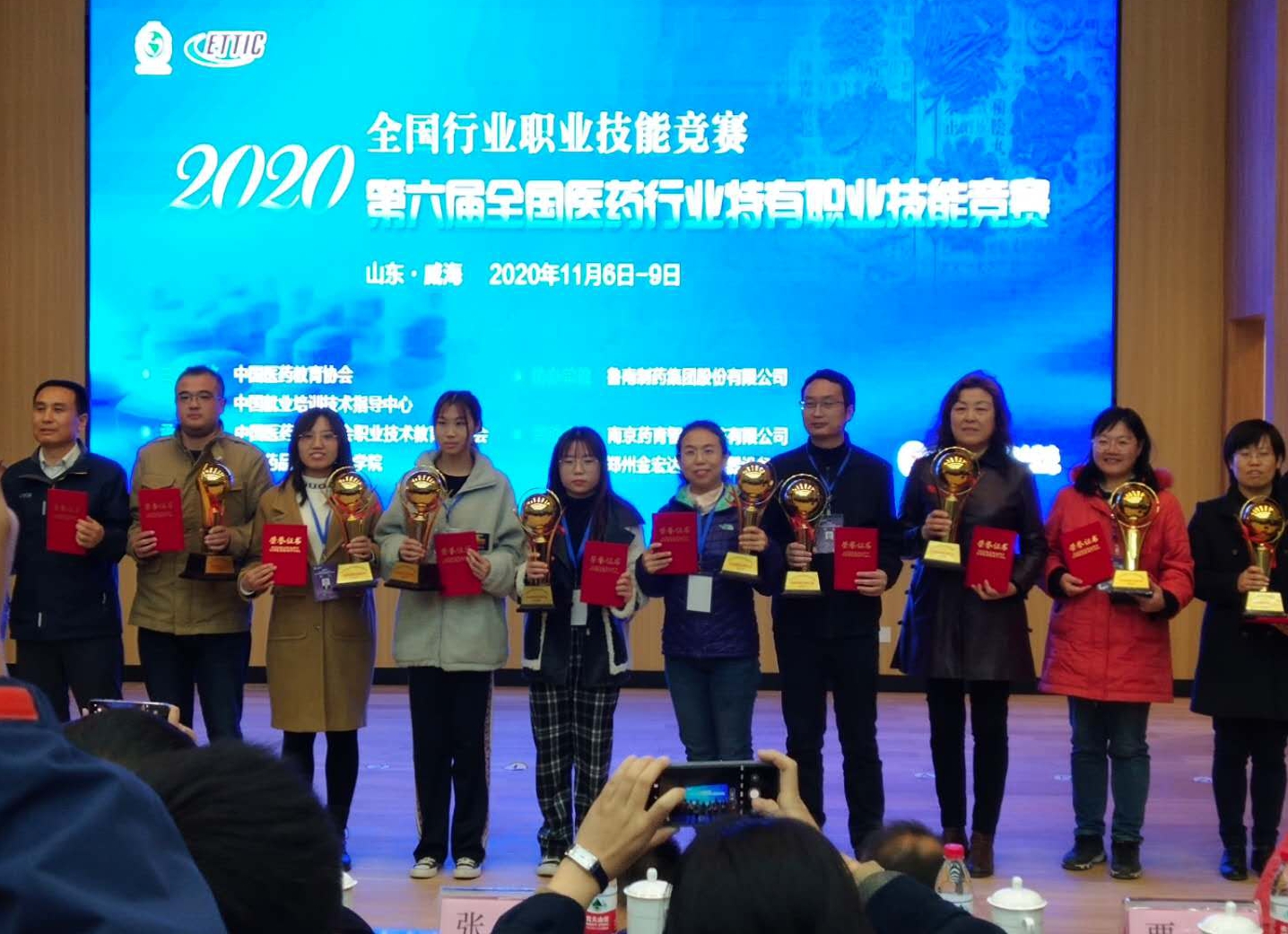 11月8日,2020年全国行业职业技能竞赛----第六届全国医药行业特有职业技能竞赛在山东药品食品职业学院落下帷幕,365上市公司官网入口中药系学生秦嘉欣、工商管理系学生牛晨旭分别获得中药调剂员和医药商品储运员竞赛二等奖;中药系学生靳月,药学系学生王炎、李瑞分别获得中药调剂员和药品购销员三等奖;学院获优秀组织奖、学生组团体三等奖和三个职业单项团体三等奖。
