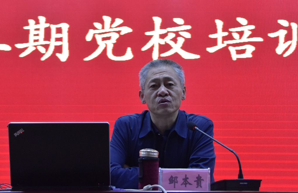 在开班仪式上,院党委副书记、党校校长邹本贵同志发表讲话并指出,举办入党积极分子培训班,是保证发展党员质量、提高党员队伍素质的重要前提,是提高入党积极分子思想认识、政治觉悟、党性修养的现实要求,是发展党员必不可缺的重要程序,同时也是通过“以干代训”锻炼组织员队伍、提高业务能力的良好形式。他希望,同学们要提高思想认识,珍惜学习机会,明确目标任务,圆满完成学习任务。开班仪式结束后,他为参加培训班的学员讲授了题为《坚定“四个自信”,从容应对世界百年未有之大变局,实现中华民族伟大复兴》的专题党课。