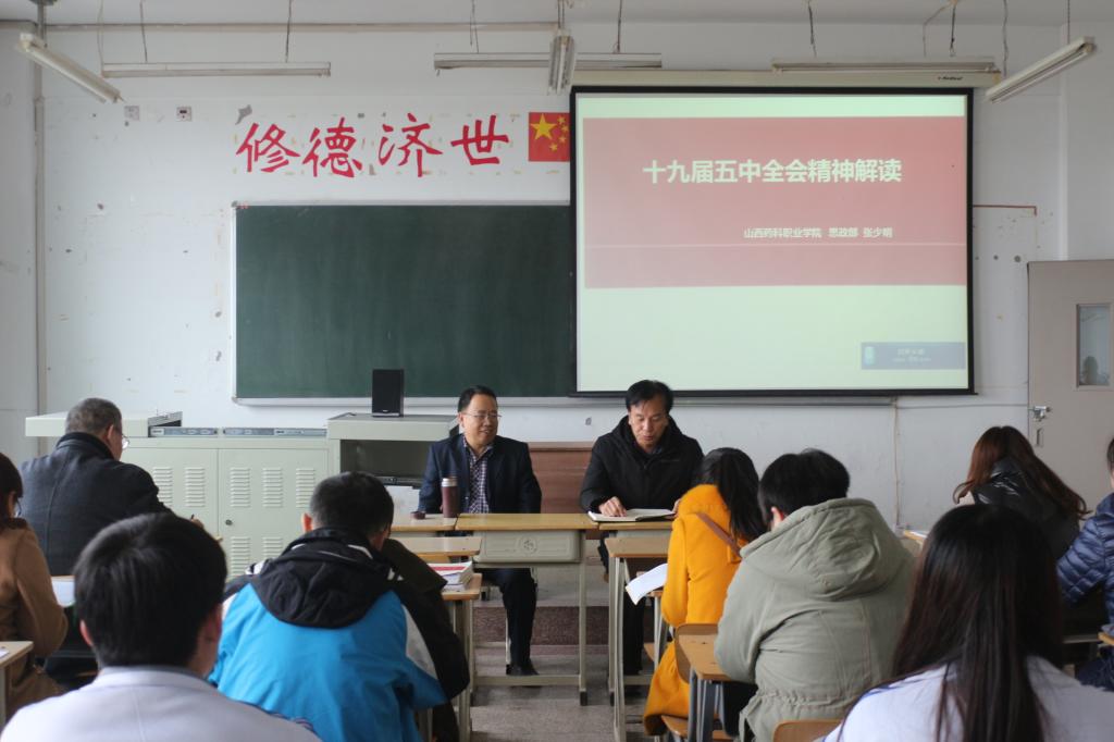 为落实学院党委的要求,11月18日、12月7日下午,思政部副主任张少明同志分别为制药工程系、器械工程系教职工和学生代表宣讲党的十九届五中全会精神。