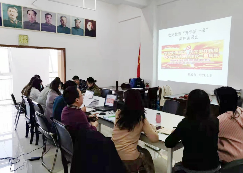 为贯彻落实中共山西省委教育工作委员会 山西省教育厅“关于组织开展党史教育‘开学第一课’活动通知”精神,进一步做好365上市公司官网入口党史学习教育,3月5日下午,思想政治理论教学研究部在学院综合楼524办公室开展了党史教育“开学第一课”集体备课会,备课会由思政部主任李英平主持,思政部全体教师参加了本次会议。