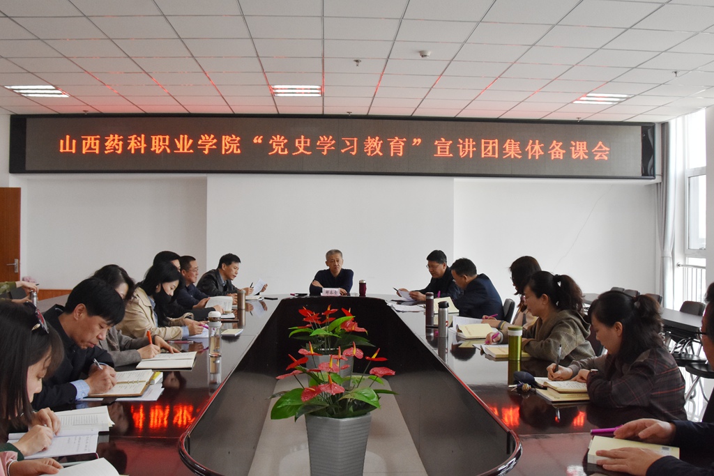3月29日下午,“党史学习教育”宣讲团集体备课会在学院综合楼523会议室举行,院党委副书记邹本贵、院党委委员宣传统战部部长高建军、各系党总支书记及思政课全体教师参加了本次会议。会议由思政部主任(宣讲团团长)李英平同志主持。