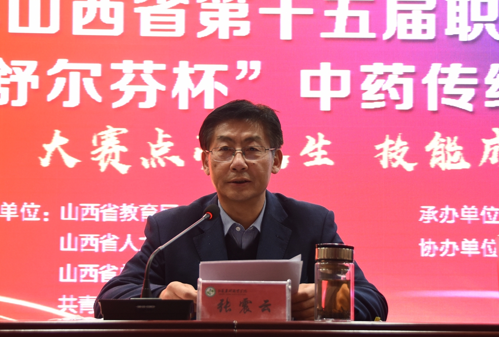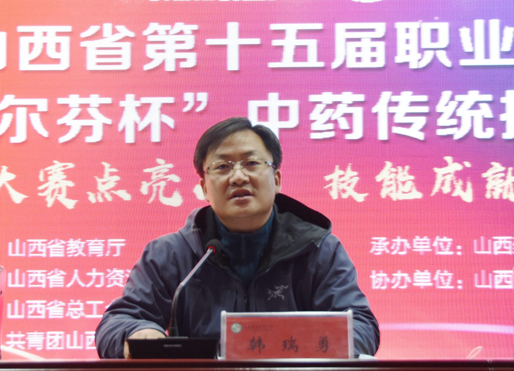 省教育厅职业教育与成人教育处处长韩瑞勇指出,职业技能大赛在推进职业教育改革,培养更多高素质技术技能人才、能工巧匠、大国工匠,弘扬劳模精神、工匠精神、劳动精神中发挥着巨大作用。希望本次大赛充分发挥引领示范作用,努力造就源源不断的中药学高素质人才大军,彰显山西中药人力人才资源优势,为推动山西经济转型发展作出贡献。希望药院严格按照技能大赛办赛要求,严密组织、认真工作、周密安排,做好卫生防疫,创造一流的比赛环境,努力办出一届和谐、公平、安全的大赛。希望所有参赛选手在竞赛中展现良好的竞技状态,赛出风格、赛出水平。希望裁判组坚持公平公正、认真负责,为本届竞赛营造良好的竞技氛围。