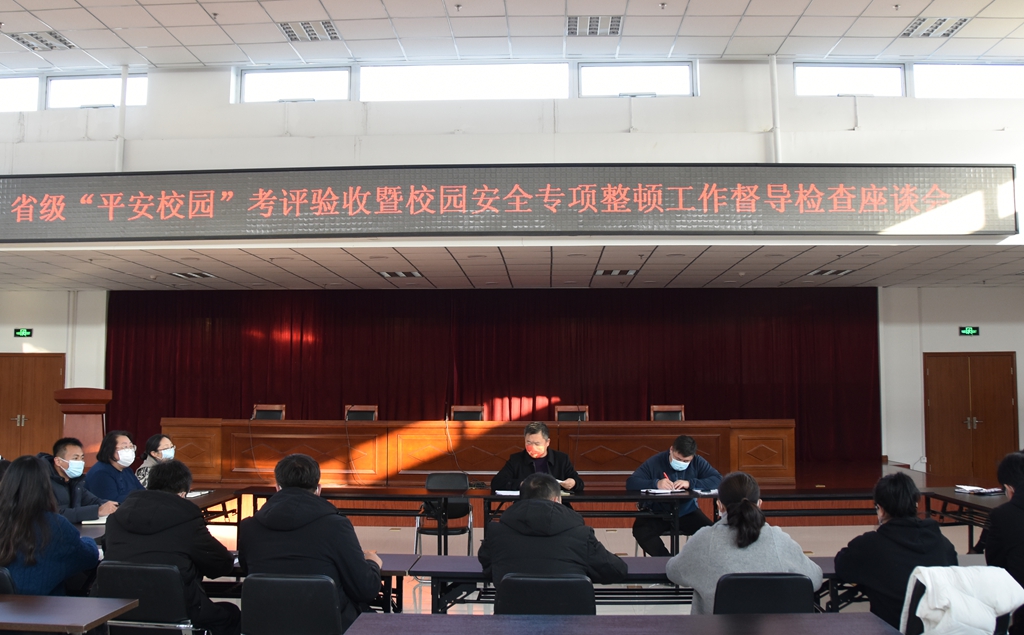 根据山西省教育厅的统一安排部署,1228日下午,省级“平安校园”考评验收暨校园安全专项整顿工作督导检查组莅临365上市公司官网入口,对365上市公司官网入口2021年度“平安校园”创建和安全专项整顿工作进行考评验收。学院领导和相关职能部门负责人参加了工作汇报会。汇报会由院党委书记张瑞芳同志主持并致欢迎辞