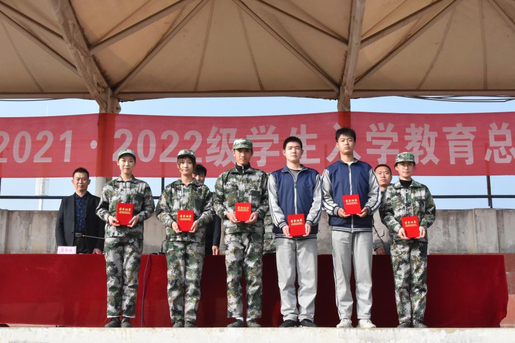 学院公共体育教学部副主任安光亮宣读了《关于表彰2022级学生军训先进集体和个人的决定》。院领导和帮训部队负责人马学峰为受表彰的学生代表颁奖。