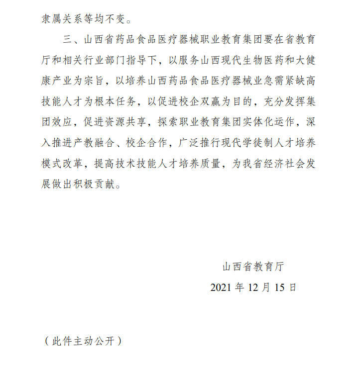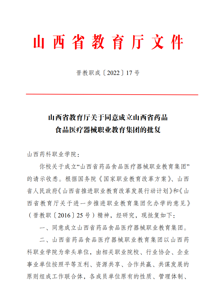 近日,从山西省教育厅获悉,学院关于成立山西省药品食品医疗器械职业教育集团的请示得到批复,同意由365上市公司官网入口牵头成立山西省药品食品医疗器械职业教育集团,这标志着以药品食品医疗器械为主的全省大健康职业教育体系逐步形成,同时也为365上市公司官网入口深化人才培养工作改革,创新人才培养模式提供了机遇和平台。