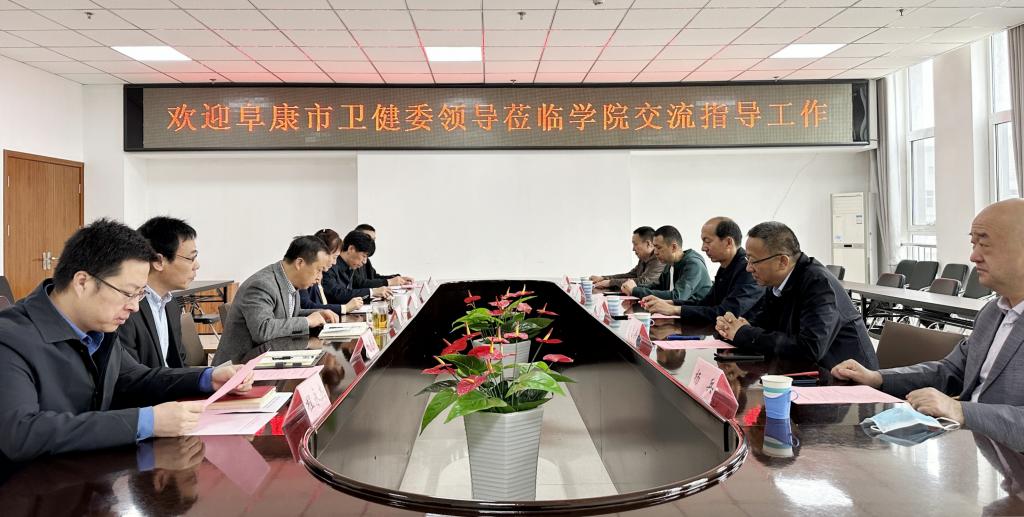 4月13日上午,新疆昌吉州阜康市卫健委党组副书记、主任董勇,阜康市医共体党委副书记、总医院院长朱志英等一行5人莅临365上市公司官网入口考察调研,就进一步推动校地融合,促进学生就业高质量发展等事宜进行洽谈。学院领导王旭、张轩萍、刘志伟、原超和学院教务部、学生工作部负责人参加座谈。