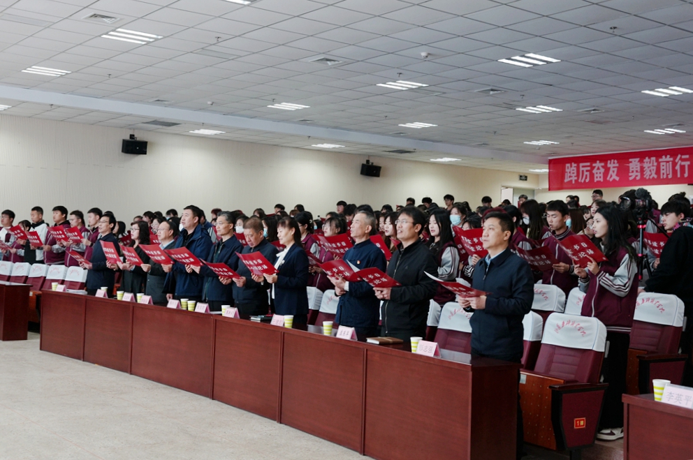 活动现场,全体师生端身正仪、整衣肃冠,面向孔子塑像三鞠躬,致敬万世师表至圣先师。随后,一曲《礼运·大同》歌,唱响了古代劳动人民对没有战争、和睦相处、丰衣足食、安居乐业的大同世界美好向往的最强音,诠释了中华优秀传统文化“讲仁爱、重民本、守诚信、崇正义、尚和合、求大同”的价值理念和精神境界。诵读环节,全体师生铿锵有力齐诵《论语》,深刻体悟为人、为学、为事、为师之道,深情表达“为天地立心,为生民立命,为往圣继绝学,为万世开太平”的家国情怀和赤子之心。在场广大青年学子由衷发出“请党放心,强国有我”和“不负时代重托、不负人民希望、不负青春韶华”的铮铮青春誓言,将整个活动推向高潮。