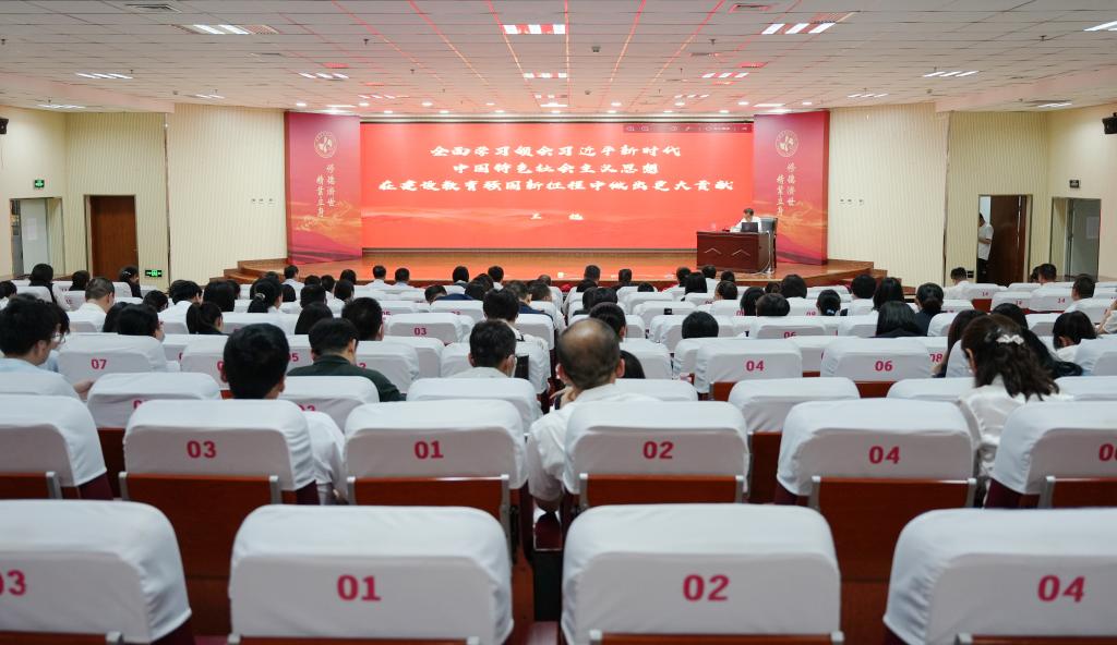 为进一步高标准高质量推动学院学习贯彻习近平新时代中国特色社会主义思想主题教育取得实效,按照学院学习贯彻习近平新时代中国特色社会主义思想主题教育有关部署安排,6月5日下午,院党委书记王旭在综合楼一层报告厅作了题为“全面学习领会习近平新时代中国特色社会主义思想在建设教育强国的新征程中作出更大贡献”的专题党课。省委主题教育第27巡回指导组组长、山西财经大学原校长刘维奇,省委主题教育第27巡回指导组副组长、长治学院党委副书记宋志燕到会指导,学院领导班子成员、基层党组织书记和全体党员参加党课学习。