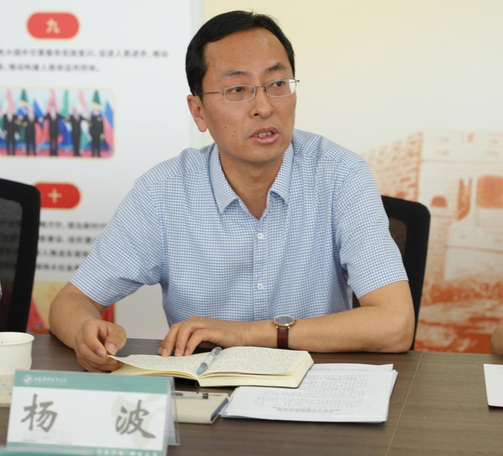 就进一步推动主题教育走深走实,杨波强调,要带头强化政治忠诚,牢记“国之大者”,加强党对教育工作的领导,强化政治监督和政治督查,通过学院班子成员带头示范引领,带动全院教职员工对党忠诚,不断增强“四个意识”、坚定“四个自信”、做到“两个维护”,自学践行立德树人初心和为党育人、为国育才使命;要带头强化理论武装,把学懂弄通做实习近平新时代中国特色社会主义思想作为立身之本、履职之要,自觉做到“六个必须坚持”,真正把学习成效转化为推动工作高质量发展的生动实践;要带头强化真抓实干,把调查研究作为开展工作的先导,坚决反对形式主义、官僚主义,以“功成不必在我、功成必定有我”的精神境界,创造出经得起历史、实践和人民检验的新业绩。