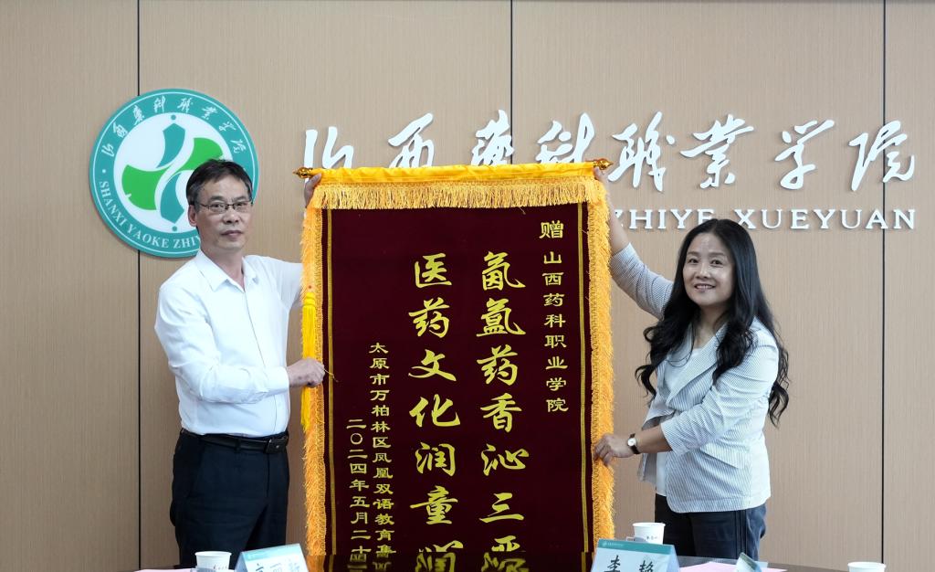 北营小学校长宋彦佳和凤凰双语教育集团校长李剑娜为学院赠送了锦旗。