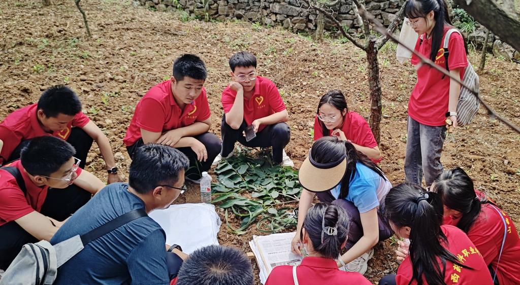 采摘天地间,留存药清香。7月9日上午,赴上党中药材产业学院实践队与平顺县职业中学师生来到平顺县榔树园村开展中药标本采集活动。一大早,实践队员们就已备好行囊踏上了上山采药的路途。采药过程中,张孟容老师一边演示如何采摘植物和制作标本,一边向队员们仔细介绍每棵采集草药的名称、特征及其用途。队员们仔细观察,专心听讲,相互探讨各类草药的习性,加深对各类中草药的认识。2023级中药学3班潘敬元同学说:“这次活动是一次知识之旅和心灵之旅,在美丽的平顺大山里亲手采摘一株株可爱的中药植物,这种感受非常美妙,简直是书本照进现实,那一刻的收获感和成就感让我觉得选择山西药科、选择中药学专业是我做的最明智的选择。”