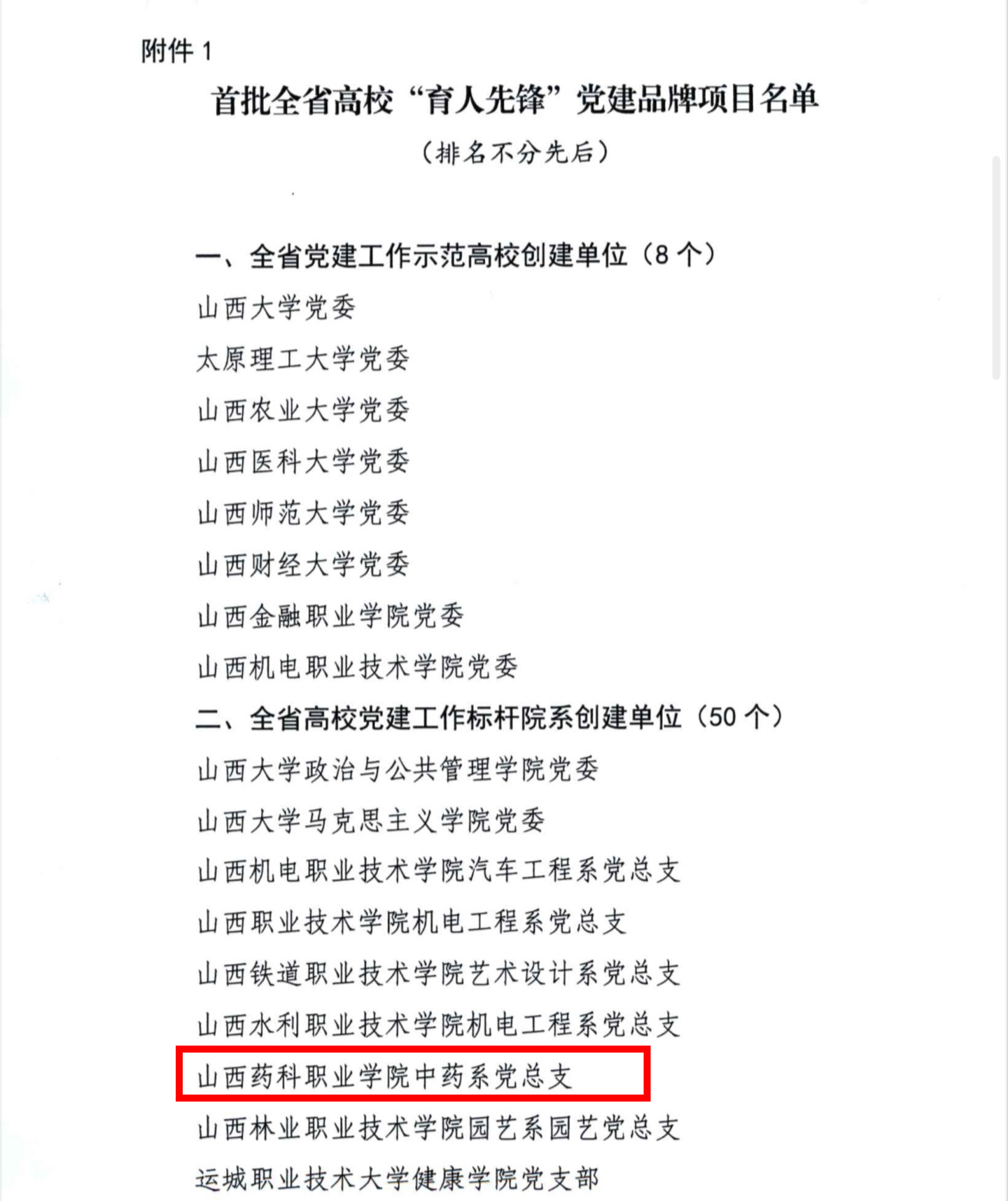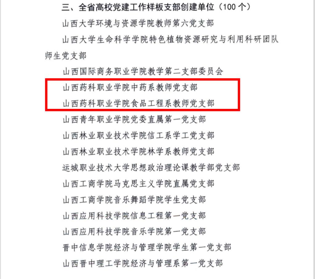 近日,省委教育工委对首批全省高校“育人先锋”党建品牌项目名单予以公布,365上市公司官网入口中药系党总支入选全省高校党建工作标杆院系创建单位,中药系党总支教师党支部、食品系党总支教师党支部入选全省高校党建工作样板支部创建单位。