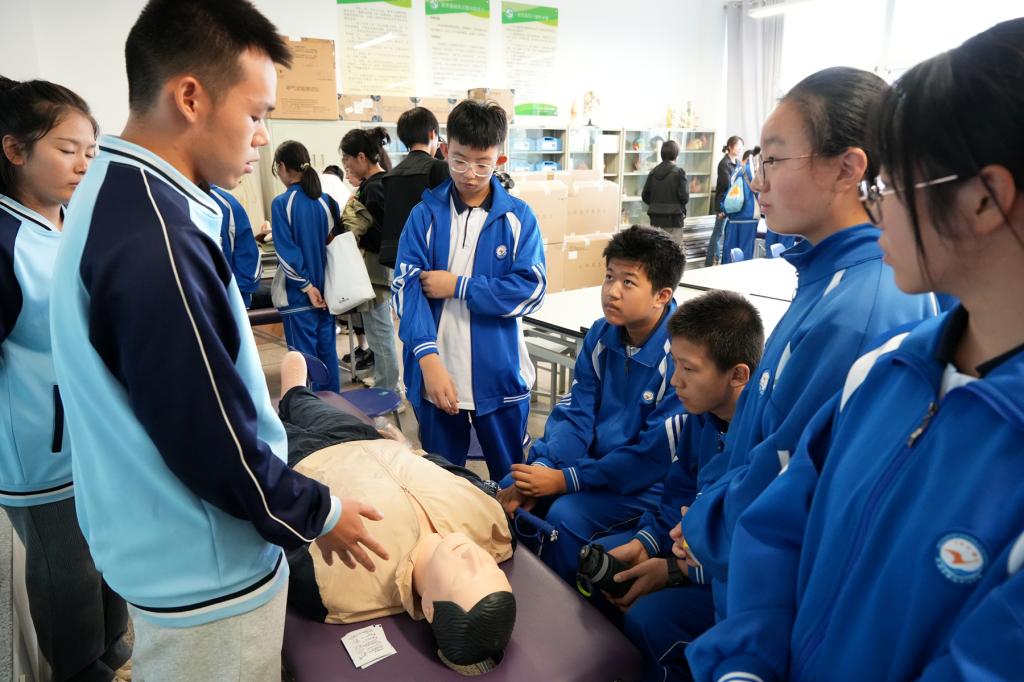 在医学基础实训室,学生们化身为小小医师,面对模拟的紧急医疗场景,他们冷静果敢地进行心肺复苏急救演练,每一次按压、每一次吹气都饱含着对生命的敬畏与珍视,也让他们掌握了在关键时刻挽救生命的宝贵技能。