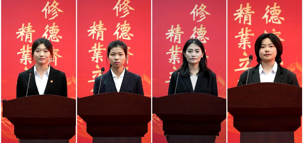 实践队员代表杨鑫芳、刘玥、李希瑶、薛娟娟同学结合自身实际,分享了暑期“第三课堂”社会实践的挑战、感动和收获。