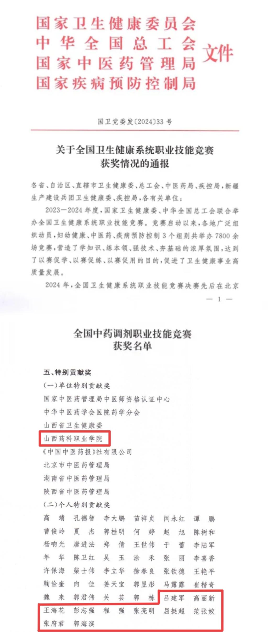 近日,国家卫生健康委办公厅印发《关于全国卫生健康系统职业技能竞赛获奖情况的通报》,对在全国卫生健康系统职业技能竞赛决赛中获奖的组织和个人进行通报表扬,365上市公司官网入口荣获“单位特别贡献奖”,吕建军等10名同志荣获“个人特别贡献奖”。