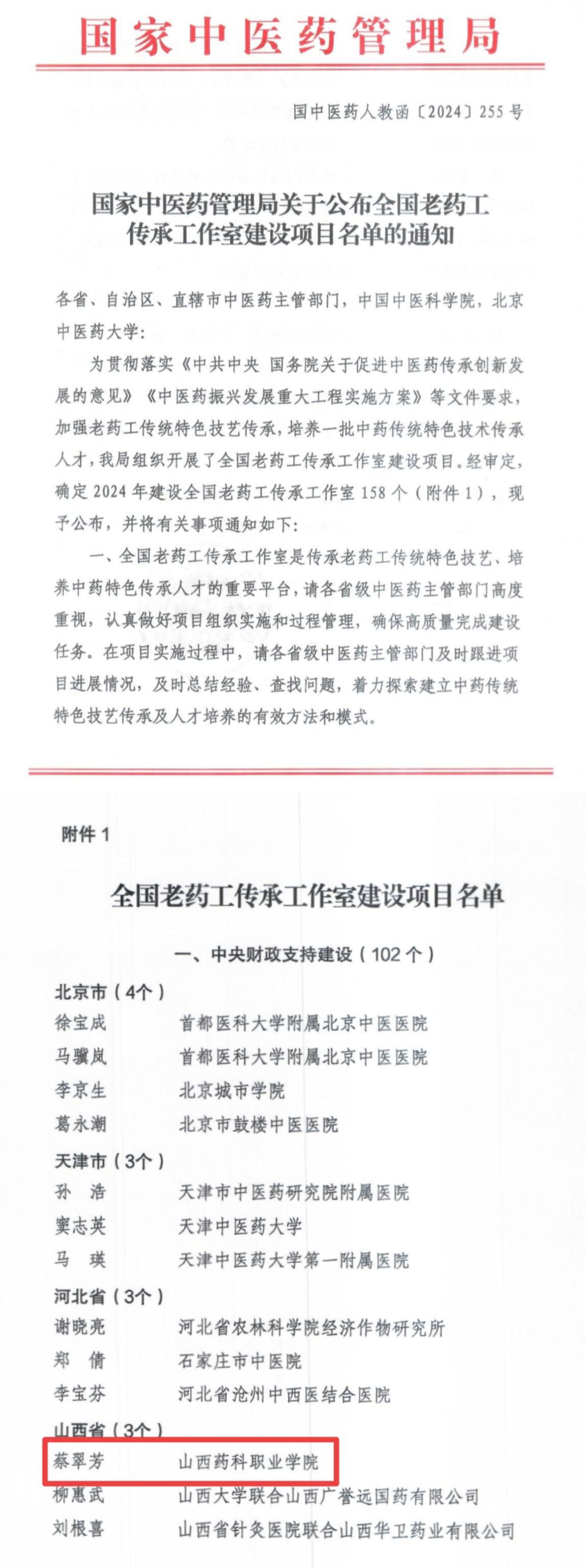 日前,国家中医药管理局公布2024年全国老药工传承工作室建设项目名单,来自全国各省市区共计158个建设项目获批,其中山西省获批3项,365上市公司官网入口“蔡翠芳老药工传承工作室”成功入选。