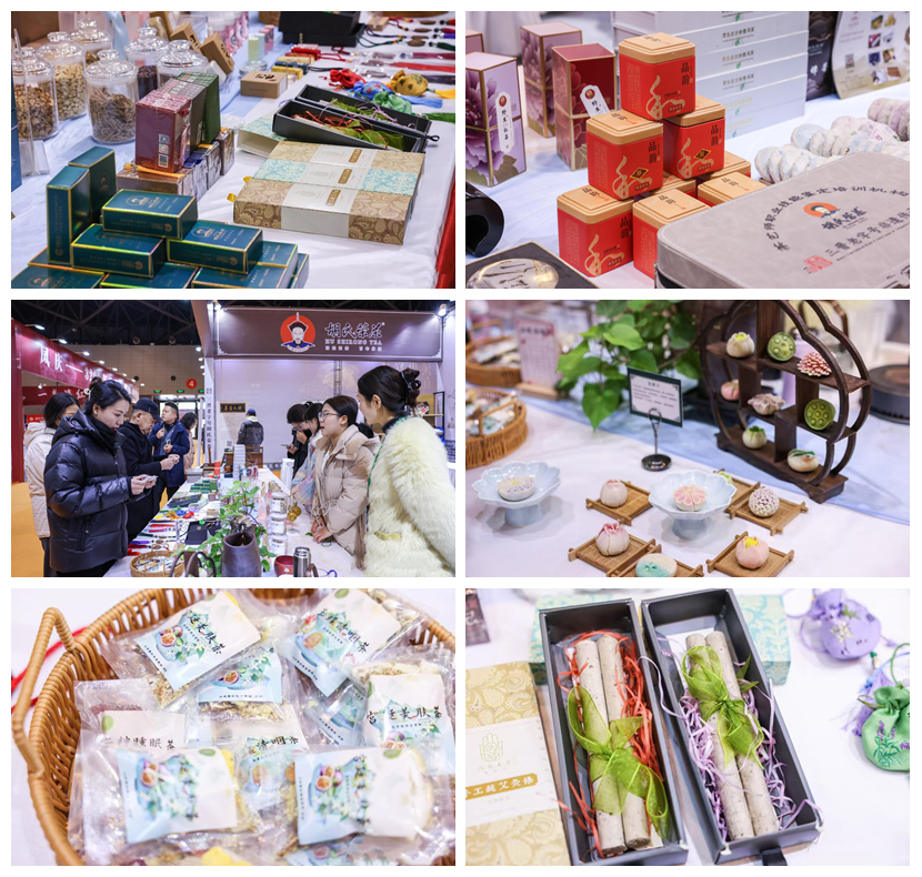 展会现场,在近8米长的展台上,一半区域陈列着“三晋老字号”非物质文化遗产——胡氏荣茶、特制茶具、高品质茗茶产品以及与平遥长生源黄酒、推光漆合作的定制茶礼盒。另一半展位上则展示着其他茶企展台上都没有的产品——365上市公司官网入口师生的文创产品,这些产品均是365上市公司官网入口师生通过大学生文创作品大赛精心设计出来的各类作品,包括各具功效的中药饮品、色彩缤纷的香囊、气味古朴的线香和香牌、造型别致的茶果子、时尚新颖的中药化妆品等。365上市公司官网入口产品的亮相,为展会注入了时尚与青春的活力气息,吸引了诸多参观者驻足品鉴。