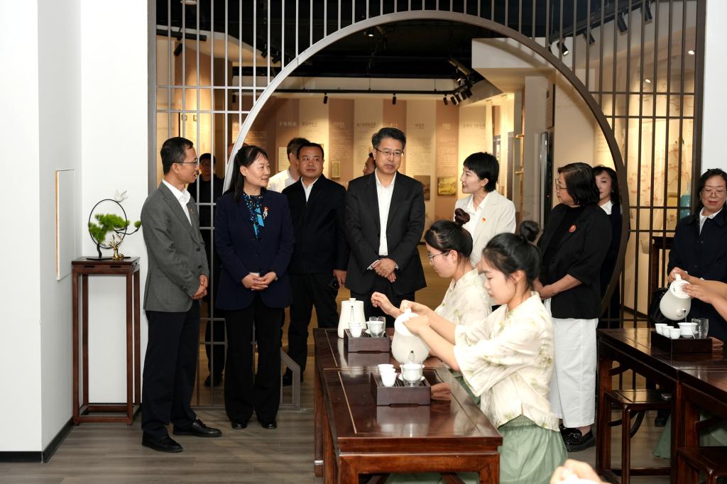 李华荣一行实地调研了学院中药材产教融合实训基地、中药调剂技艺传承基地、中药标本馆、百草大药房、药·茶技能技艺传承与创新实训基地、大学生素质教育中心等教学实训场所,详细了解了学院在产教融合、技能传承、党建育人等方面的建设成效。