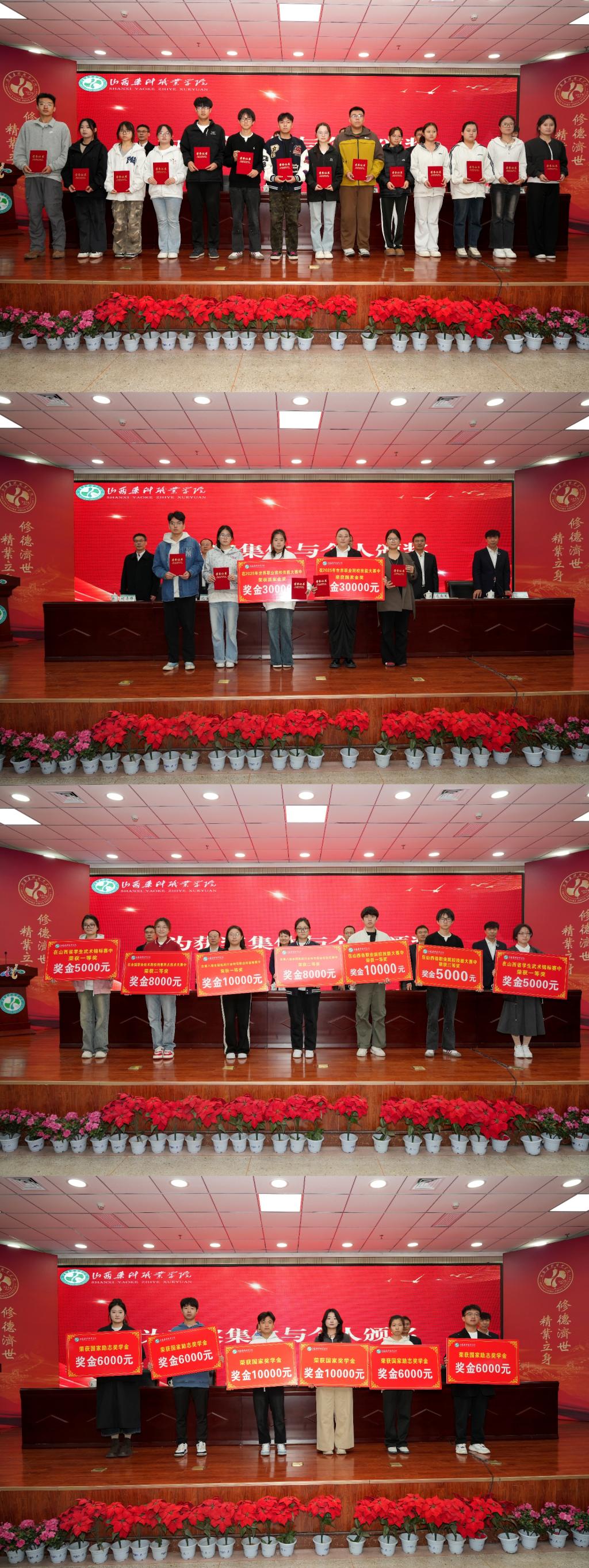 典礼现场,学院对获得2024—2025学年学生先进集体、个人及校外竞赛获奖学生代表进行了表彰。