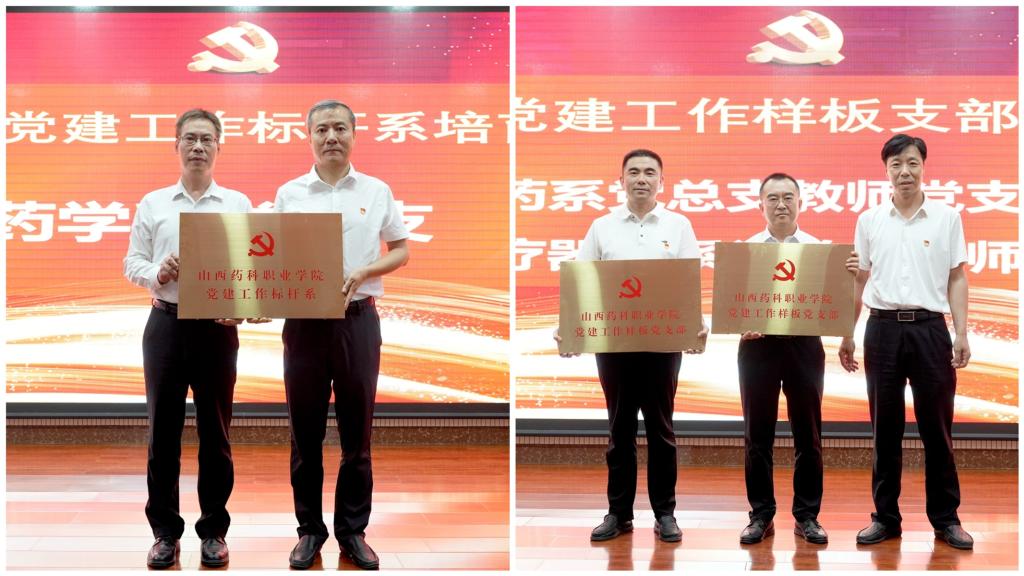 会上,为学院第二批党建工作标杆系培育创建单位药学系党总支和第二批党建工作样板支部培育创建单位中药系党总支教师党支部、医疗器械系党总支师生联合党支部分别授牌;5名基层党组织书记汇报了全国党建工作样板支部和学院党建工作标杆系申报和创建情况。