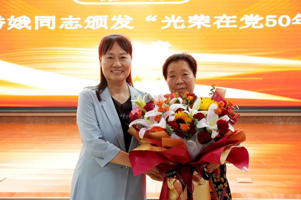 会上,为翟秀娥同志颁发了“光荣在党50年” 纪念章,为2024年新发展党员代表佩戴党员徽章;新发展党员进行入党宣誓,老党员重温入党誓词。