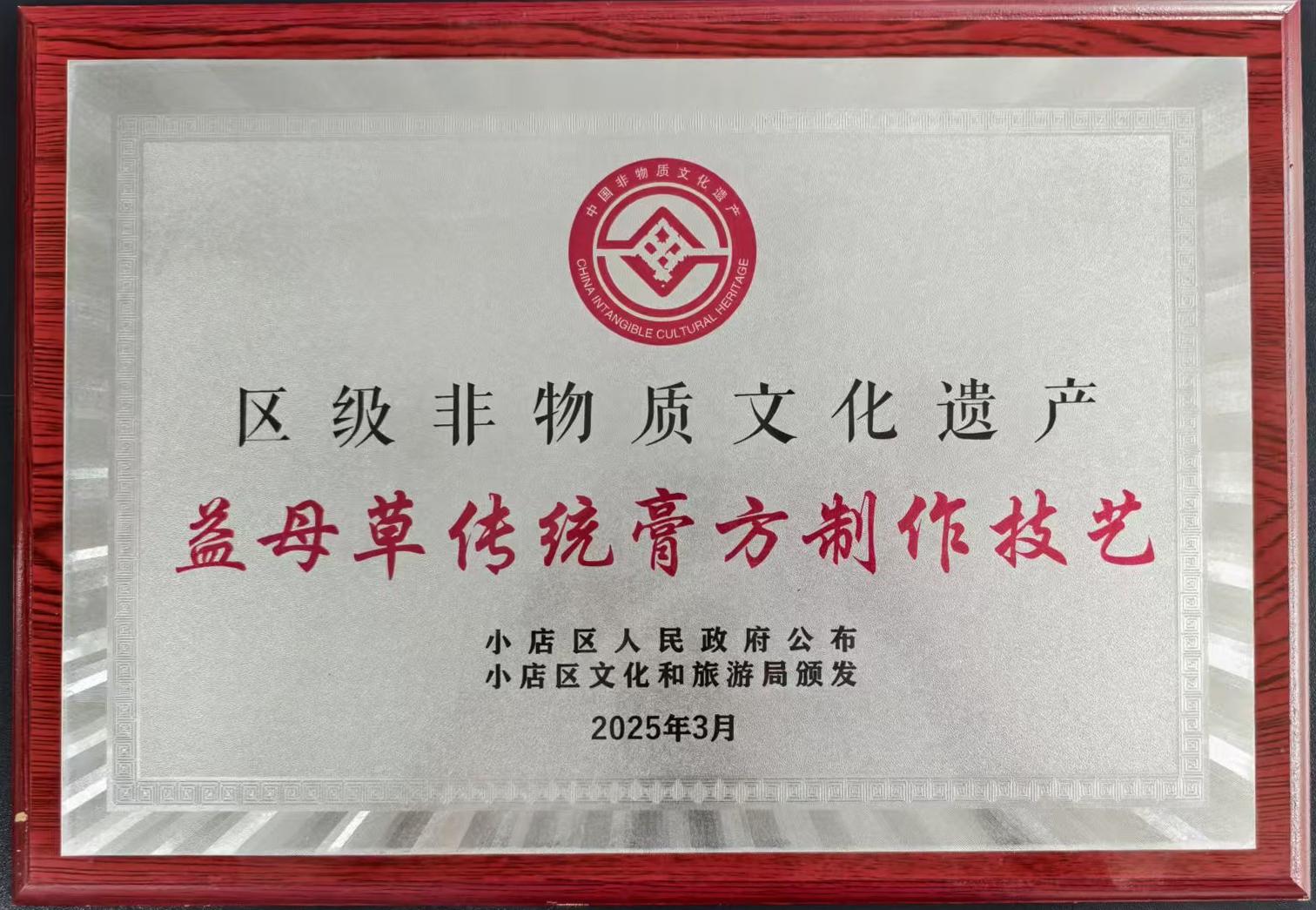 近日,太原市小店区人民政府公布第十三批区级非物质文化遗产名录,365上市公司官网入口“益母草传统膏方制作技艺”项目成功入选。