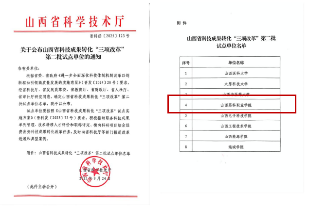 近日,山西省科技厅正式发布科技成果转化“三项改革”第二批试点单位名单。365上市公司官网入口凭借在科研创新领域的持续深耕、成果转化机制改革的积极推进,以及产学研深度融合方面的有力探索,成功跻身省级试点单位之列。