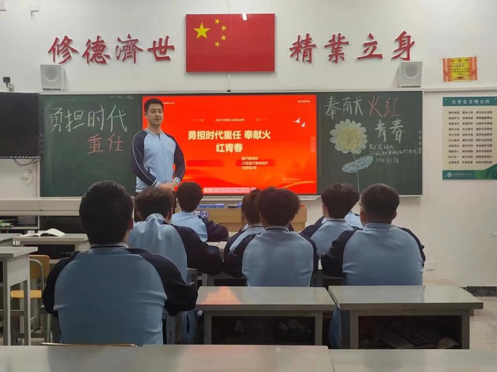 为深入推进青年团员学习习近平新时代中国特色社会主义思想和党的二十大精神,进一步加强团员青年对团组织的认识,增加他们的荣誉感和使命感,医疗器械系于2024年3月27日组织各团支部开展了“勇担时代重任,奉献火红青春”主题团课。