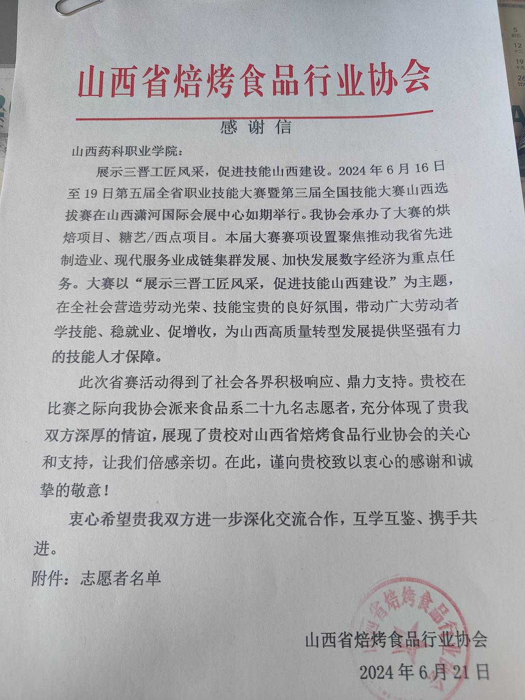 为深入学习贯彻落实党的二十大精神,全面贯彻落实习近平总书记对技能人才工作重要指示和致首届全国技能大赛贺信精神,大力实施技能强省战略,充分发挥竞赛引领带动作用,加快建设“技能山西”,加快培养大批高素质劳动者和高技能领军人才,在全社会营造劳动光荣、技能宝贵的良好氛围,引领带动广大劳动者学技能、稳就业、促增收,为山西高质量转型发展提供坚强有力的技能人才保障,山西省人社厅、省教育厅、省财政厅、省总工会联合举办了第五届全省职业技能大赛暨第三届全国技能大赛山西选拔赛。食品系派出29名志愿者参加了烘焙、糖艺/西点制作两个赛项的志愿服务工作,获得主办方好评。