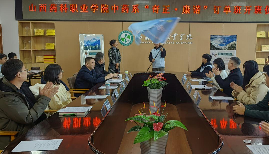 12月9日,中药系在学院综合楼523会议室举办“奇正•康诺”订单班开班仪式。山西康诺众创健康管理咨询有限公司董事长李伟峰一行3人、中药系党政班子全体成员和订单班全体学生参加。仪式由中药系分团委书记屈挺超主持。