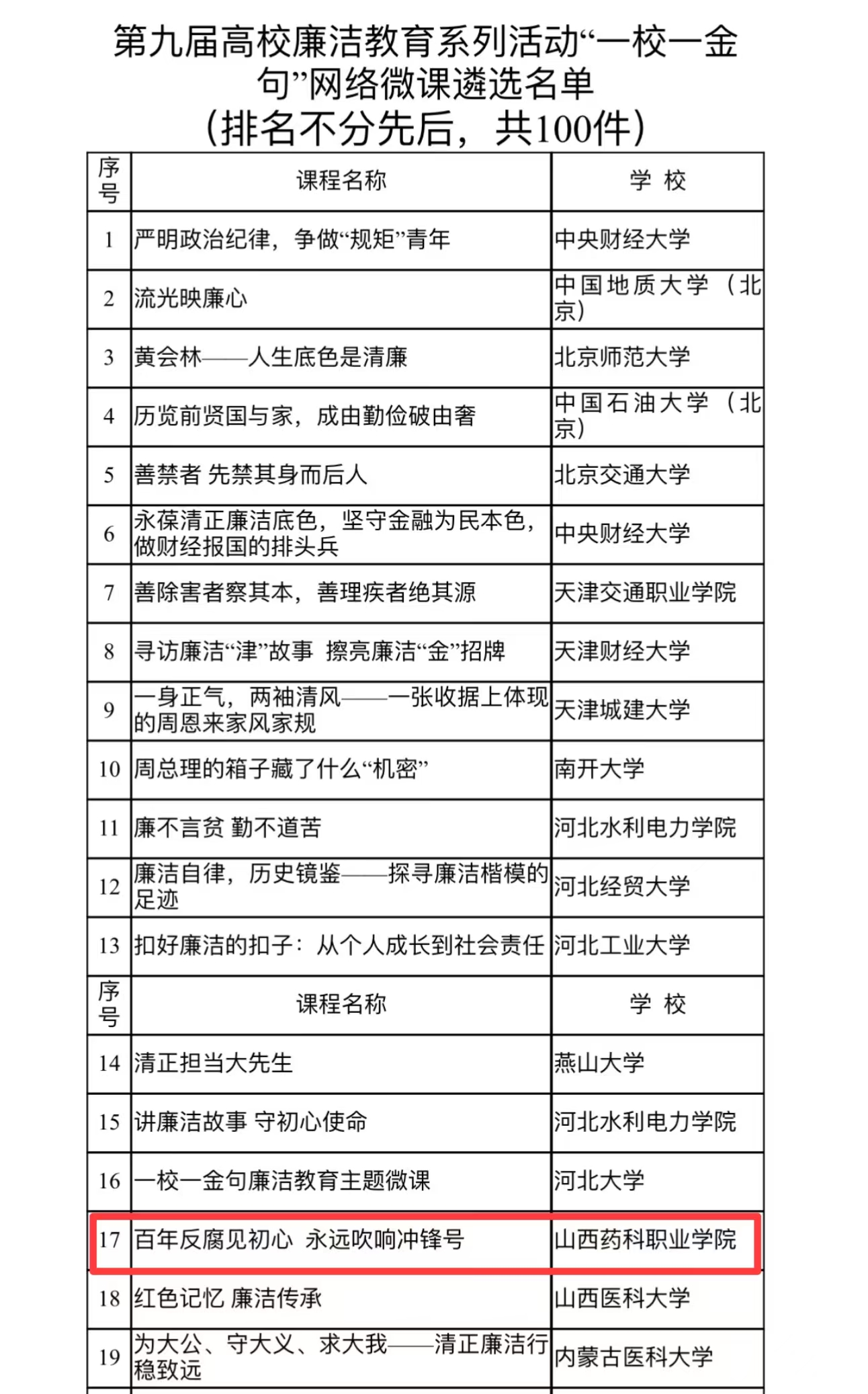 本次学院除学生一件作品获奖外,思想政治理论教学研究部陈琪老师作品《百年反腐见初心永远吹响冲锋号》入围第九届高校廉洁教育系列活动“一校一金句”网络微课遴选名单,所获奖项名列全省高职高专前列。