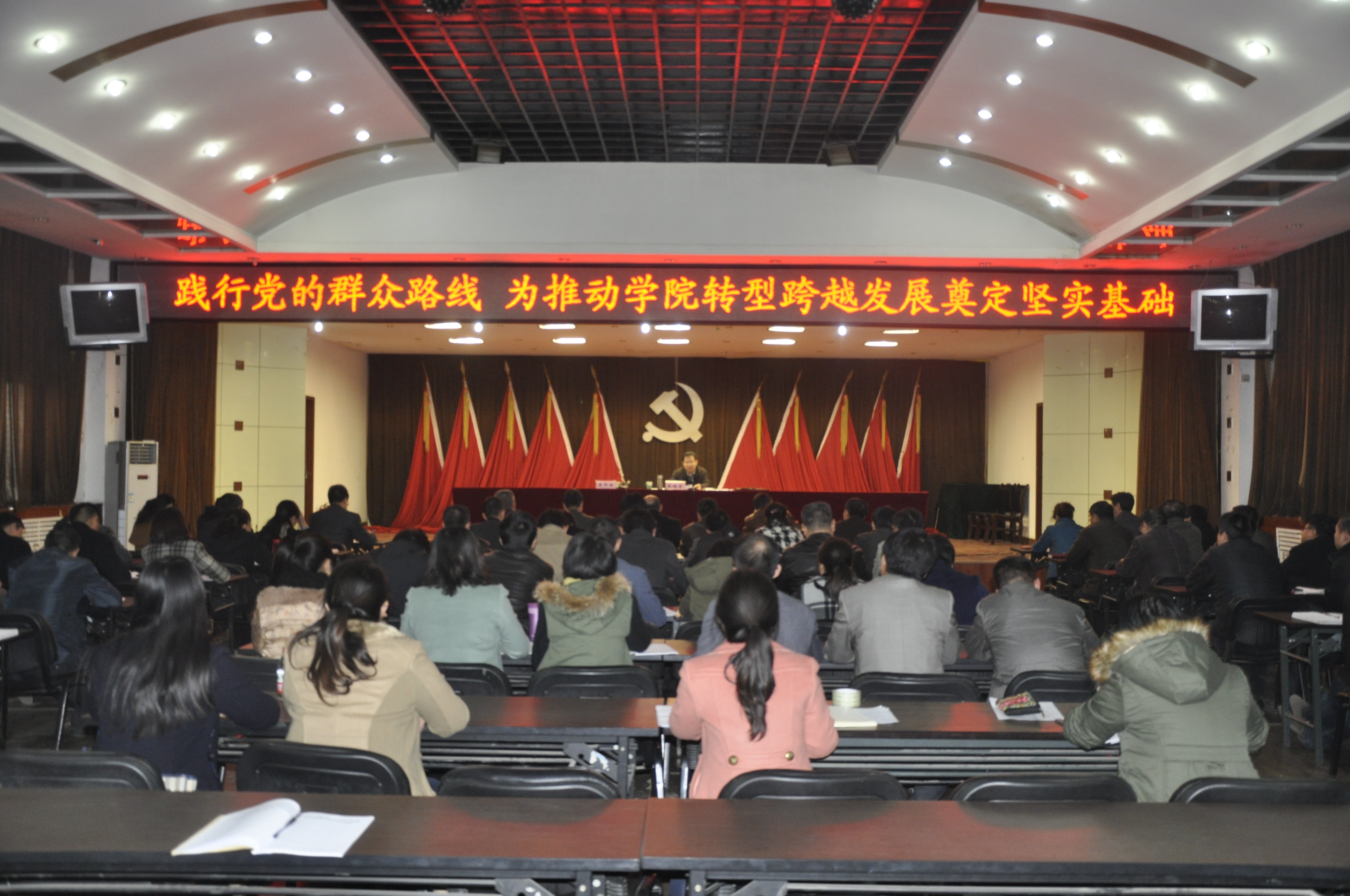 ——党委书记张瑞芳给学院副科以上干部讲党课 为进一步增强学院党员干部党的群众路线认识,凝聚广大党员干部自觉践行群众路线、共谋学院转型跨越发展共识,11月21日下午,学院党委书记张瑞芳在文体中心以“践行党的群...2013-11-22 -