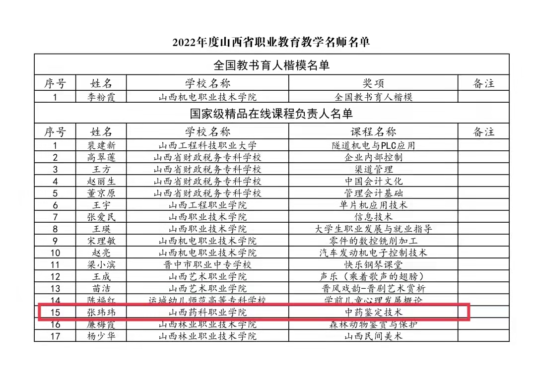 喜讯:365上市公司官网入口张玮玮老师荣获“山西省职业教育教学名师”称号
